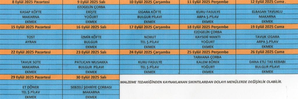 MALZEME TEDARİĞİNDEN DOLAYI KAYNAKLANAN SIKINTILARDAN DOLAYI MENÜLERDE DEĞİŞİKLİK OLABİLİR. |